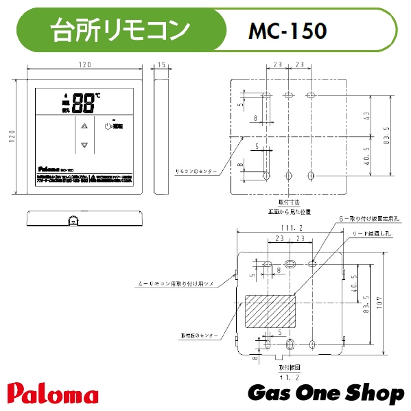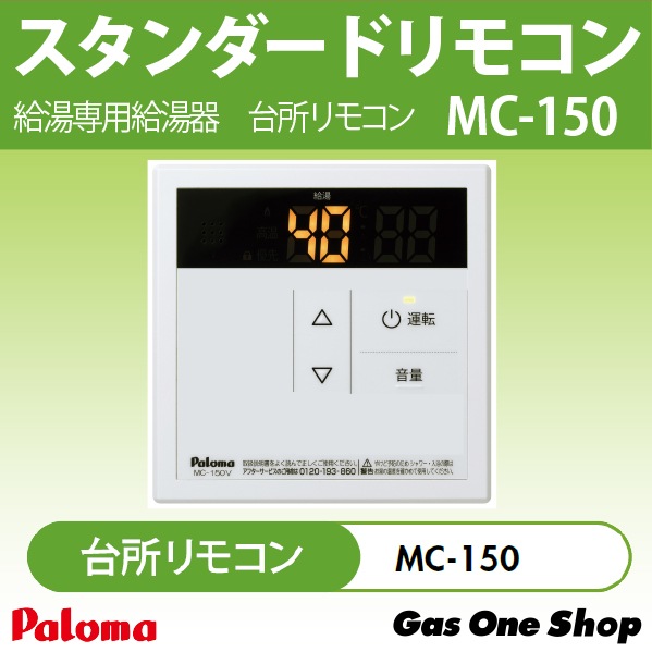 パロマ 台所用 給湯器用 スタンダードリモコン MC-150