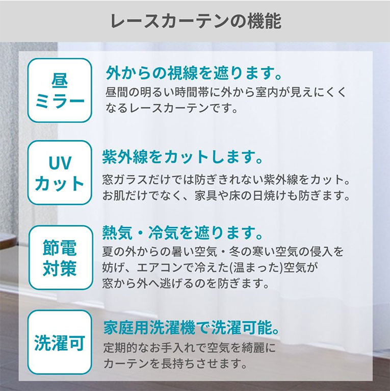 UV加工、ミラー加工効果のあるレースカーテン