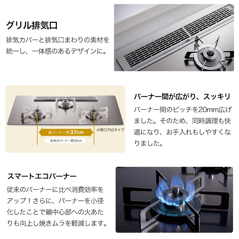 ダブル高火力&ダブルトロ火 ダブル温度調節機能 温度クック機能 焼サポート機能 温調機能+タイマー併用機能 炊飯機能:ごはん&おかゆモード/炊きこみごはんモード/ごはん早炊きモード |