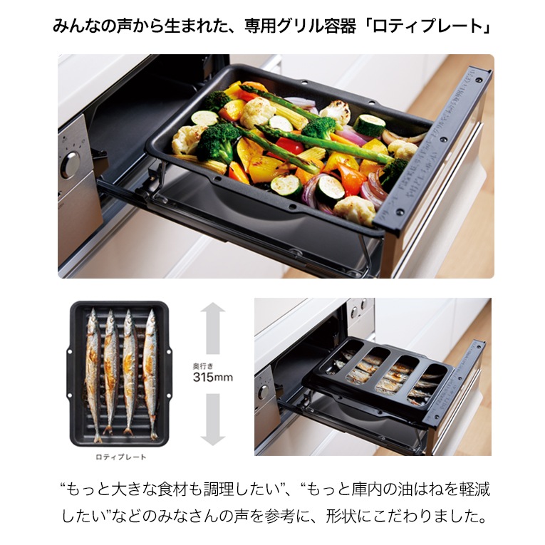 | 形態 | ステンレスフェイス 前面パネルフラット ワイドグリル 無水両面焼 |