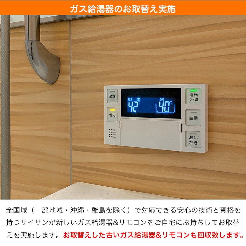 ガス消費量:追焚 LPガス:11.0kW / 都市ガス:10.3kW