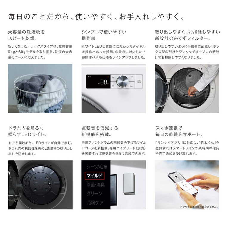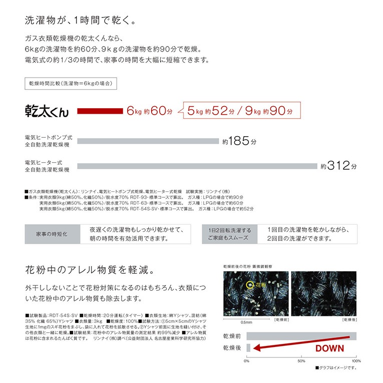 リンナイ 家庭用 衣類乾燥機 乾太くん デラックスタイプ 6kg 上部操作パネル RDT-63T