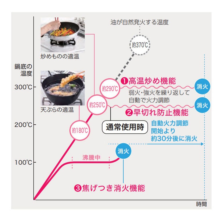 安全機能 :安全センサー(調理油加熱防止装置)