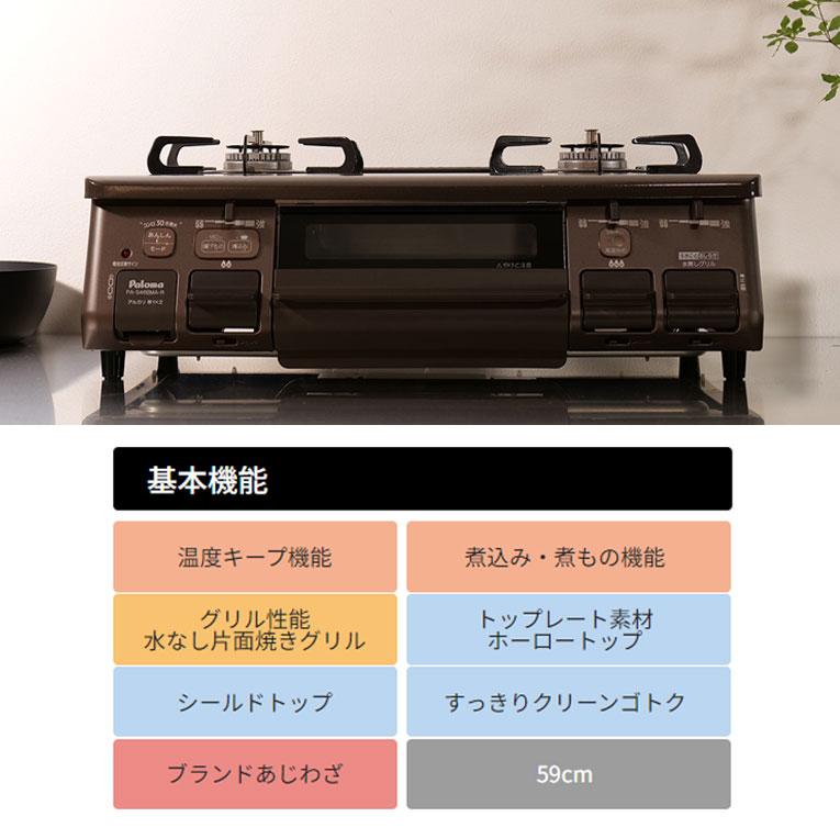 PA-S46BMA旧型番:PA-S45BMA【あじわざ】パロマ ガステーブルコンロ ガスコンロ 59cm 水なし片面焼グリル プロパン 都市ガス