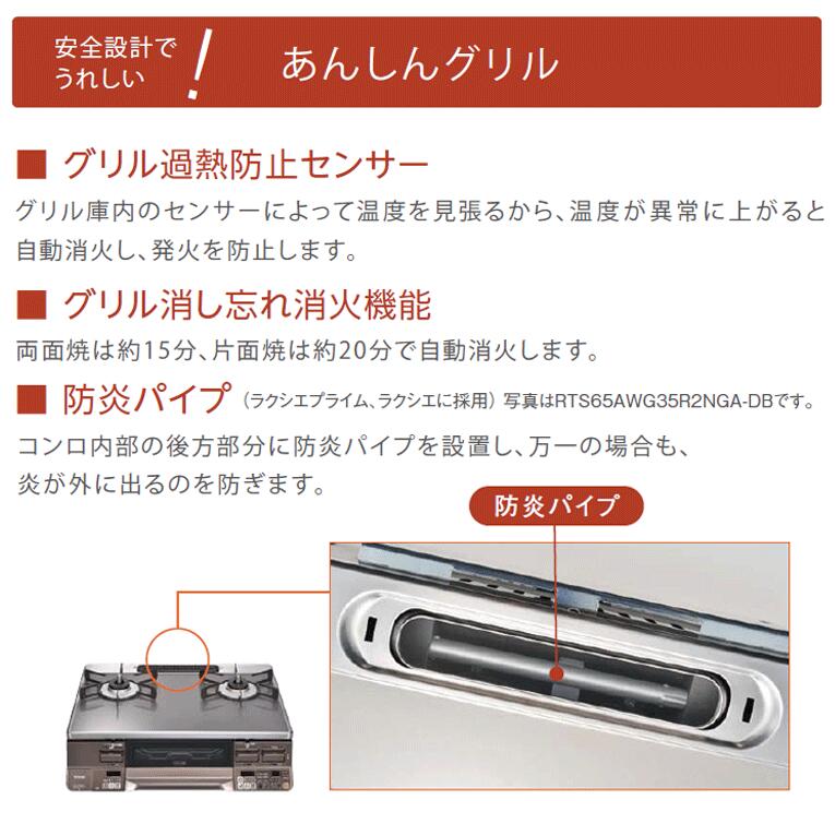 専用スポンジ付き リンナイ ガステーブルコンロ ラクシエプライム RTS65AWG31R2GA