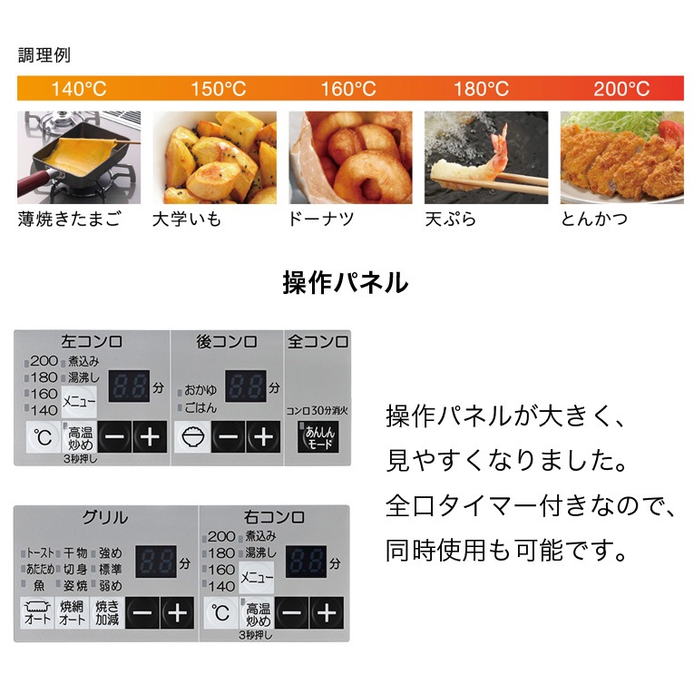 …コンロ調理タイマー 1~99分(3口同時使用可能)
