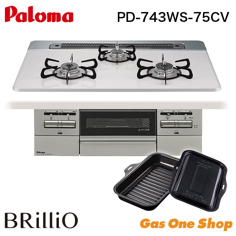 パロマ ビルトインコンロ ブリリオ Brillio 75cm PD-743WS-75CV