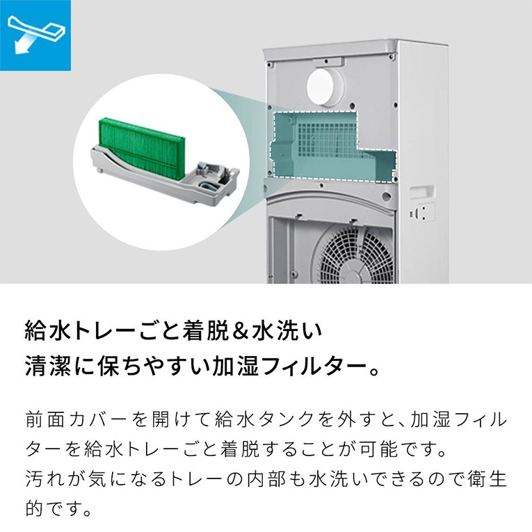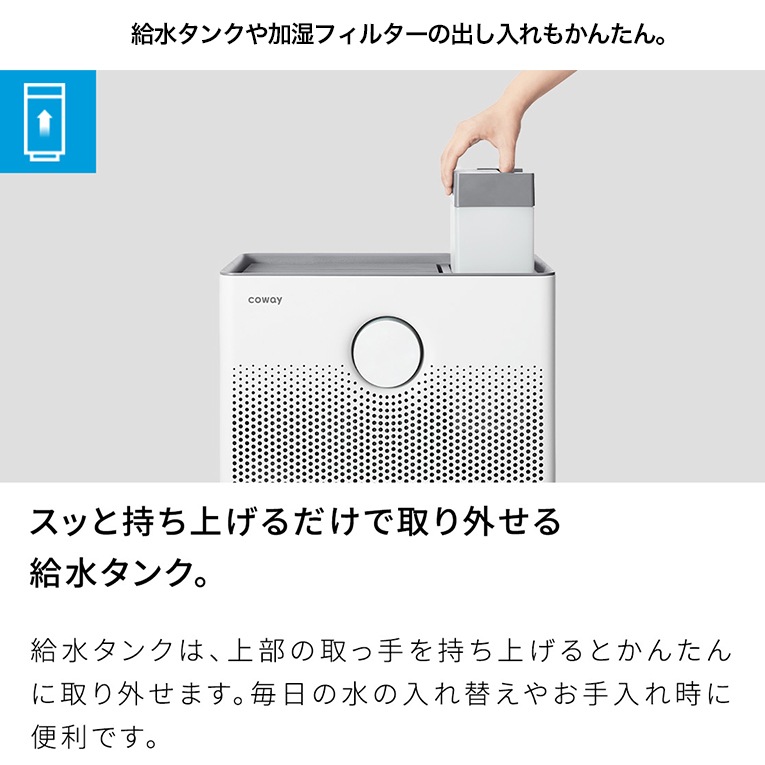 「空気清浄」と「加湿」ふたつの機能を衛生的に両立。