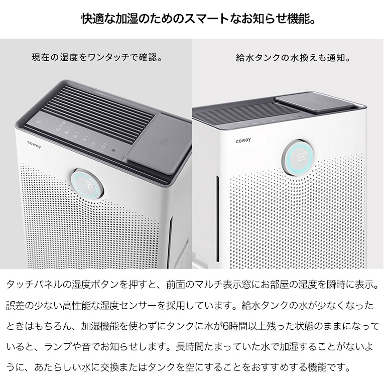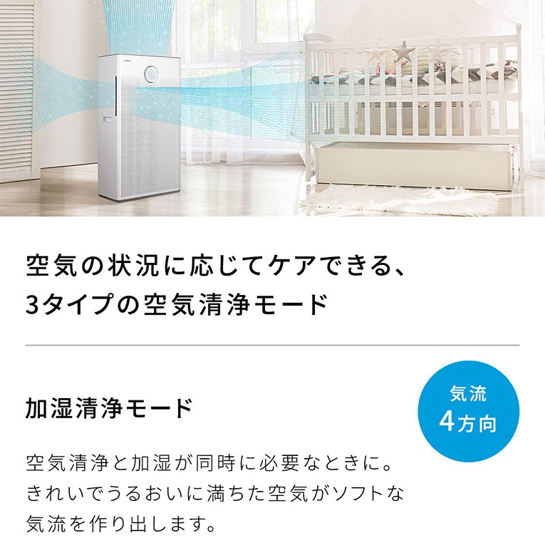 空気の乾燥もケアできる加湿機能付き。