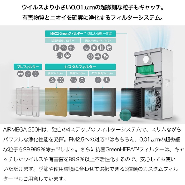 【正規代理店】コーウェイ 加湿空気清浄機 エアメガ 250H ホワイト APMS1421J2
