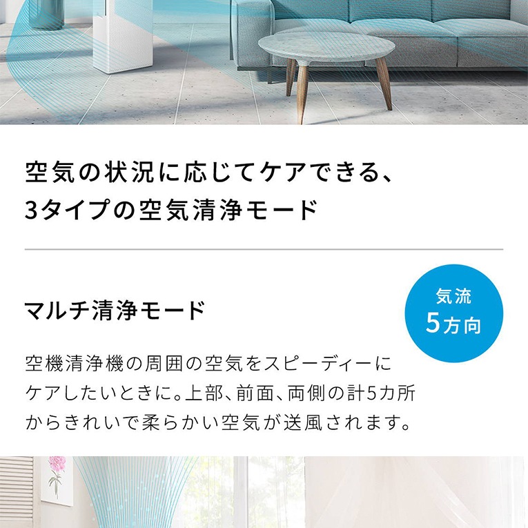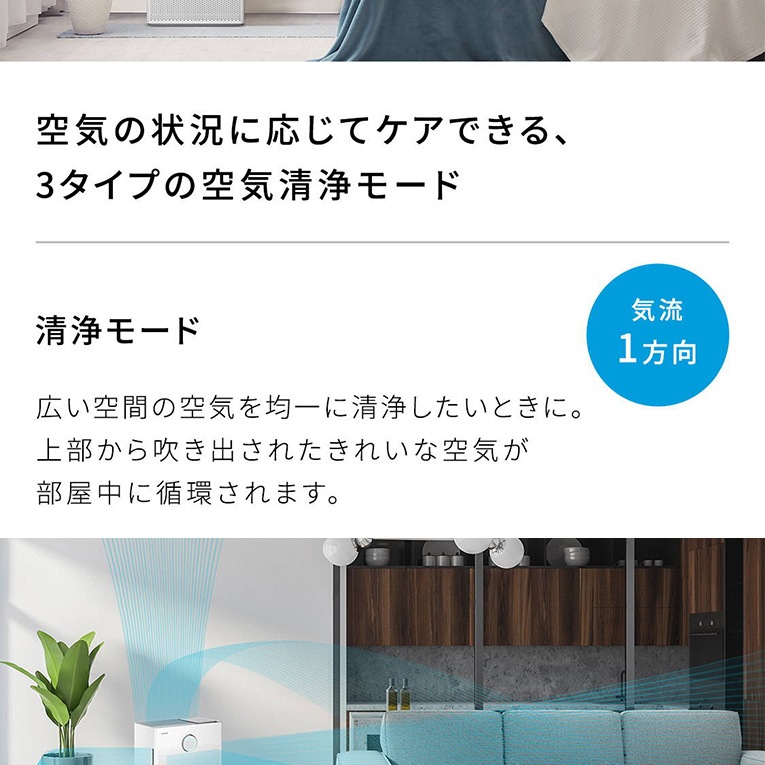 空気の状況に応じてケアできる、3タイプの空気清浄モード。