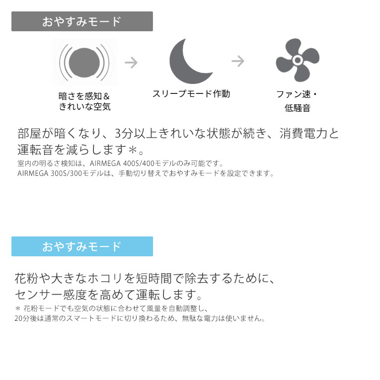 運転 : おまかせ/エコ/おやすみ(自動/手動)/花粉