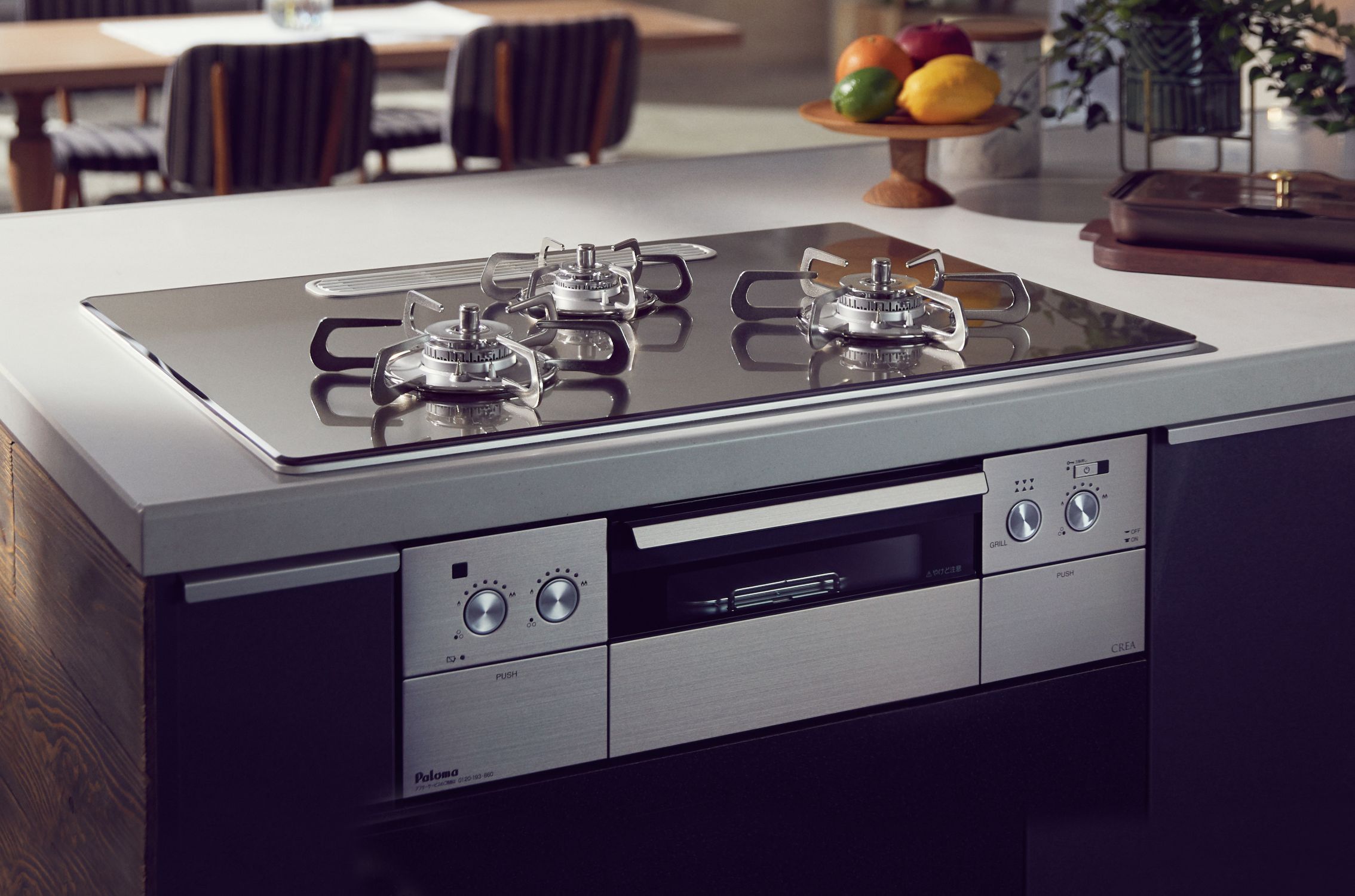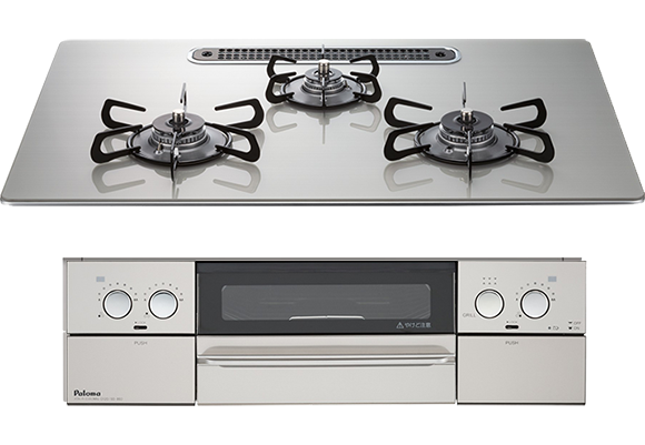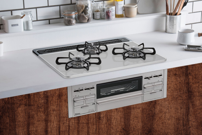 ビルトインガスコンロとは、火力の調整やグリル機能に特化しており、キッチンに組み込まれたガスコンロのことです。グリル部と操作部が離れているため、お掃除も簡単で見た目もスッキリ。天板幅は60cmと75cmの2つのタイプがあり、キッチンに組み込まれているので、お掃除も簡単なものが多いです。